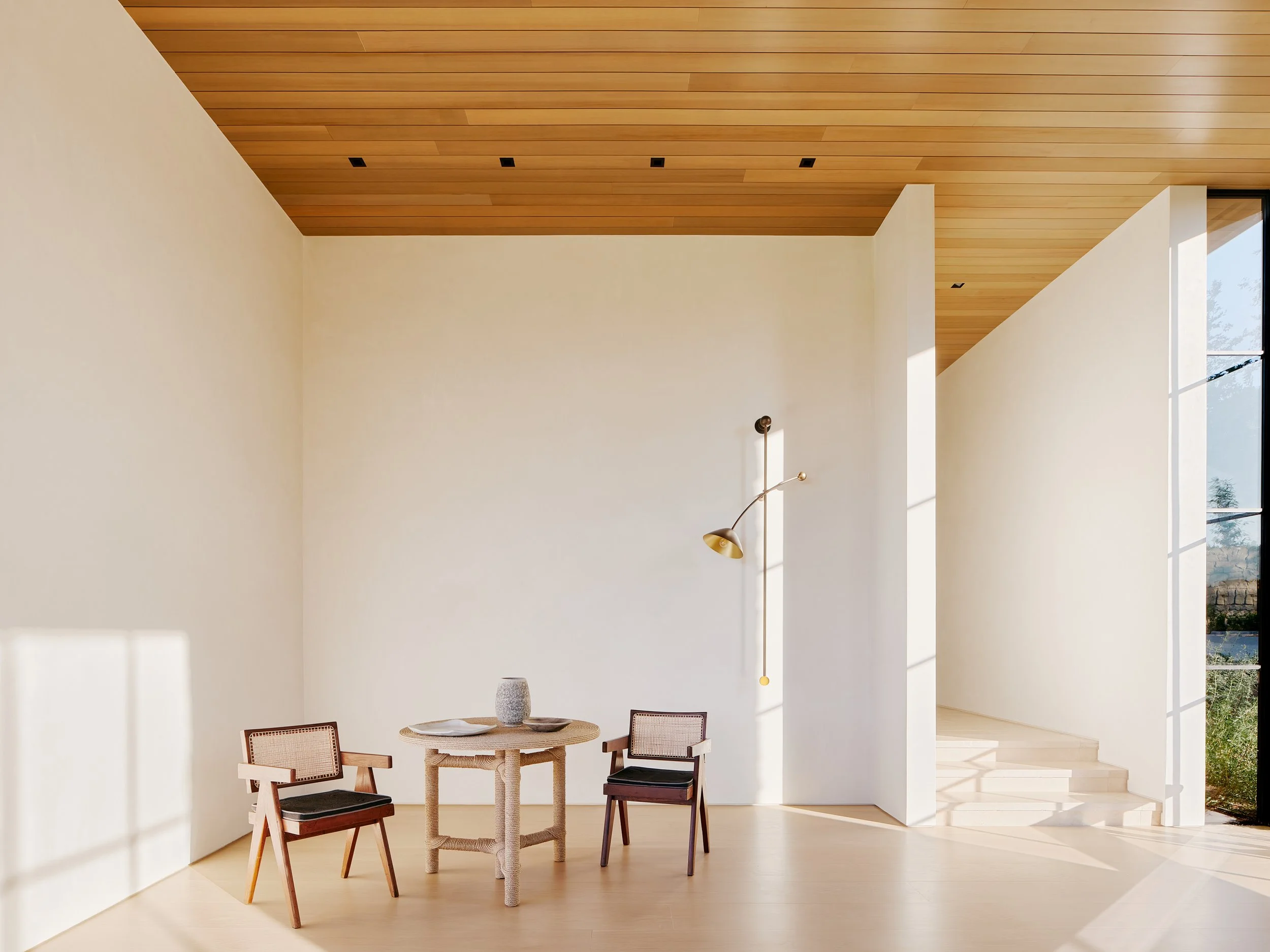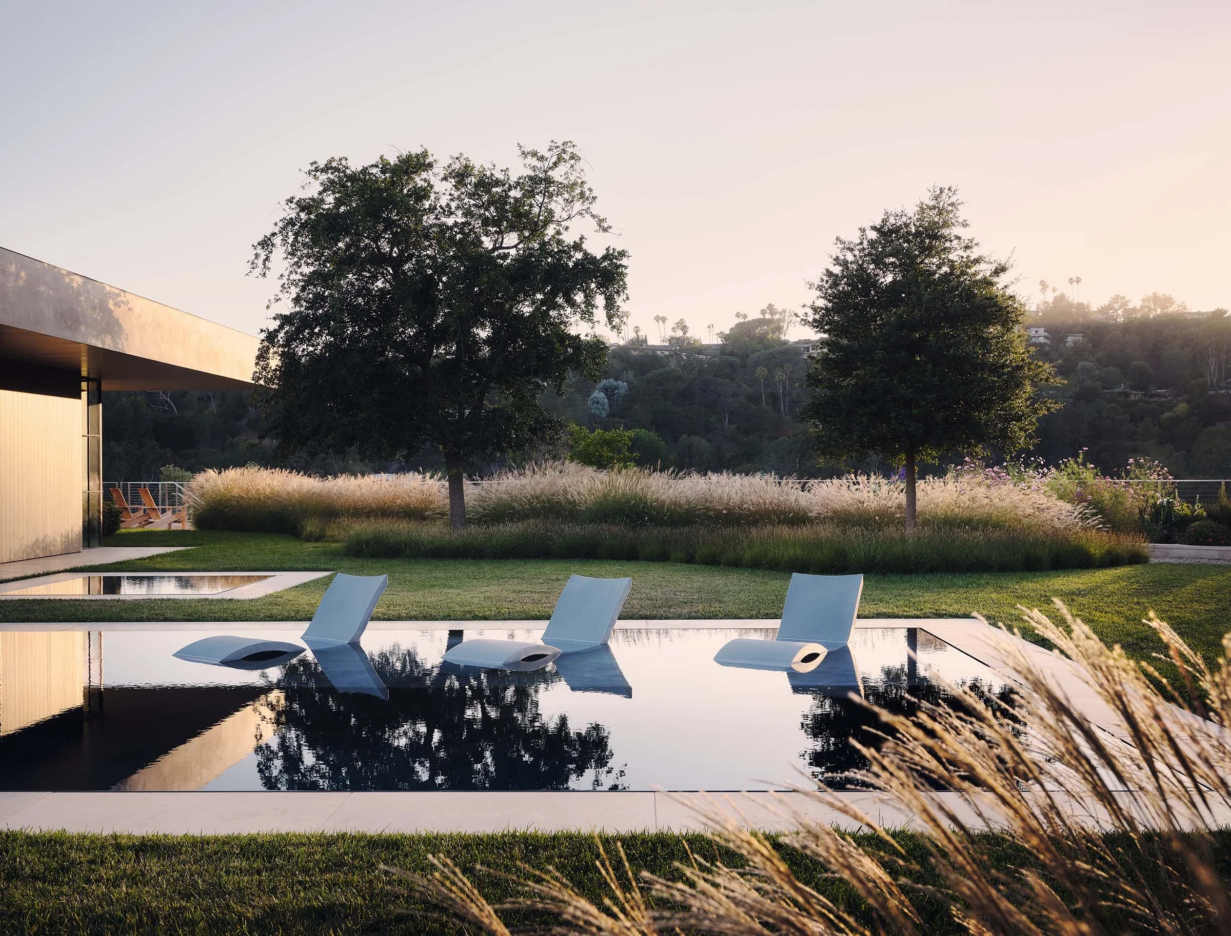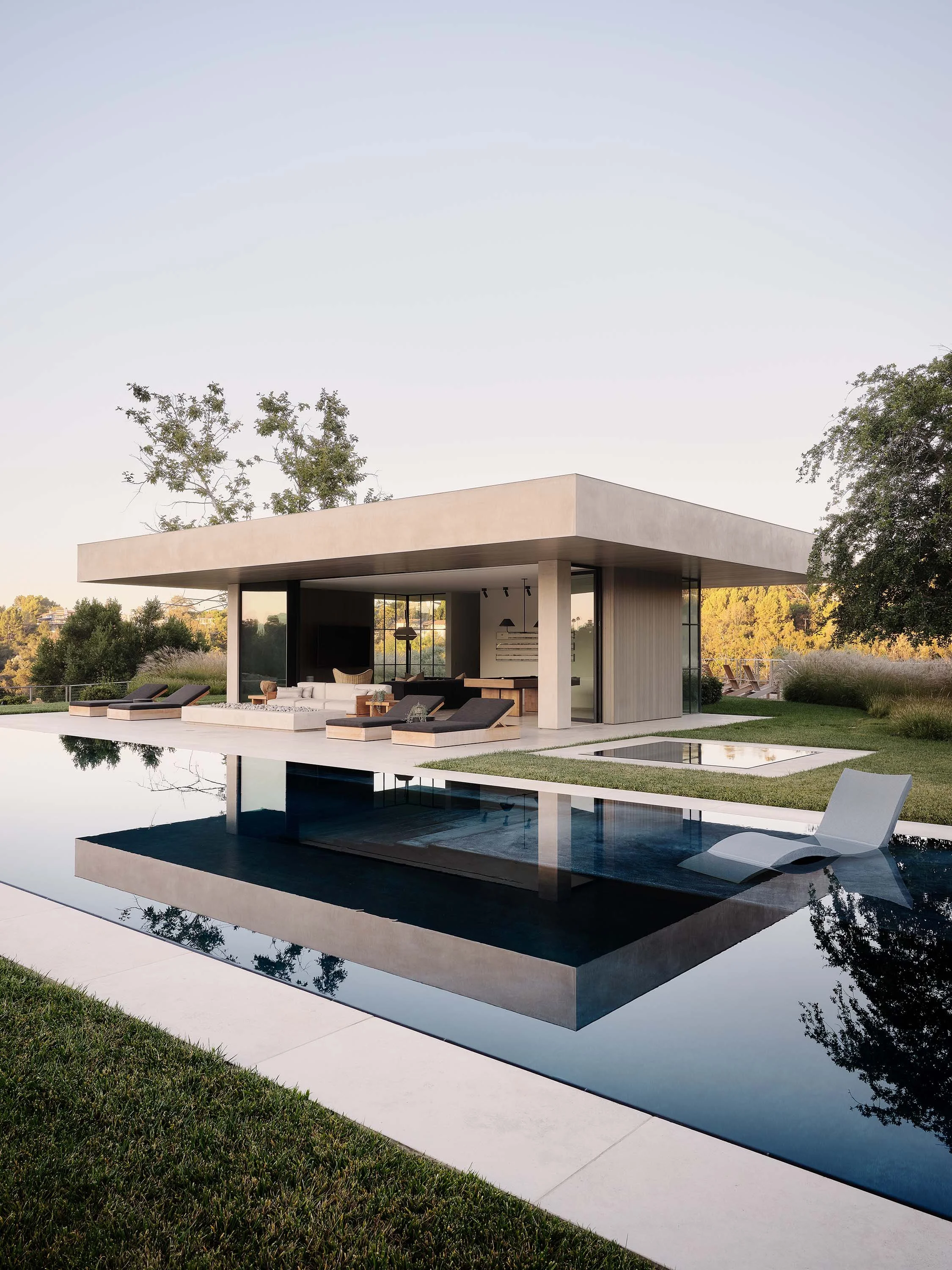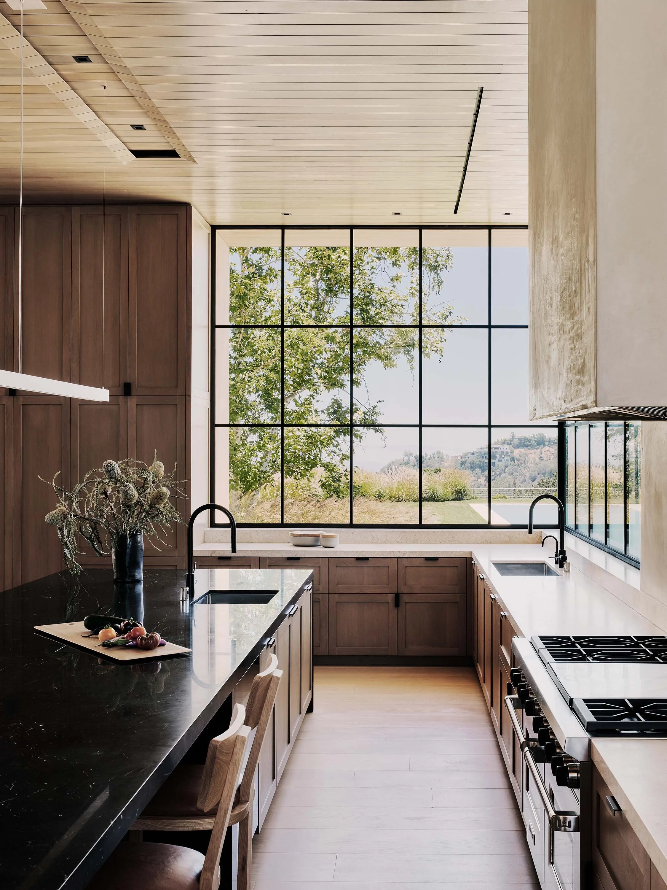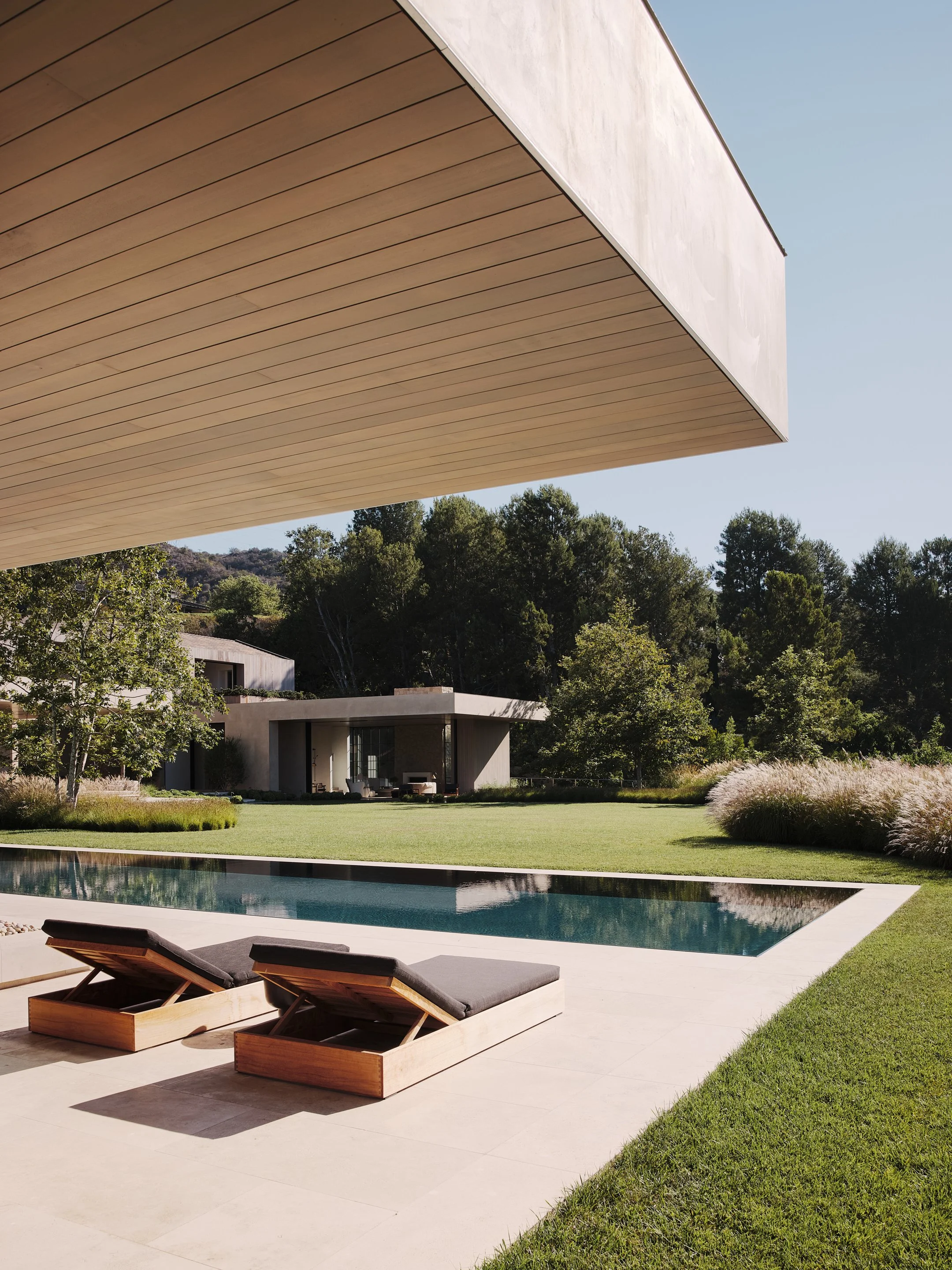 One can still ride a horse through parts of Los Angeles, the second-largest city in the United States, a place synonymous with the urbanity of the highway and the automobile. Mandeville Canyon is one such place - anachronistic and charming for its more agrarian feel, along a rolling canyon frequently punctuated by native Coast Live Oaks, benefitting from a coastal breeze that flows through from the nearby Pacific Ocean. It was the spirit of this place that we chose to create a modern rustic home.